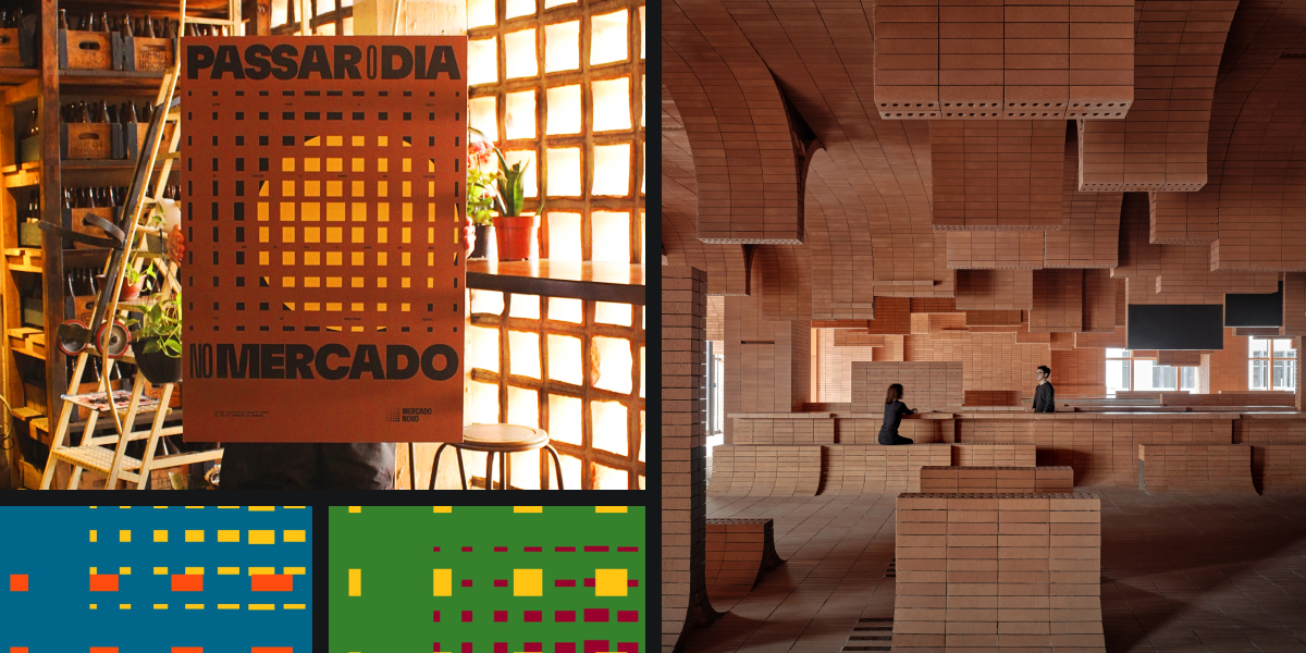 브라질 벨루오리존치에 있는 오래된 시장, Mercado Novo를 위한 브랜딩 프로젝트였어요. 이 공간은 요즘 젊은 창작자들이 입주하며 복합 문화공간으로 다시 주목받고 있죠. 디자이너는 이 건물의 특징인, 격자무늬 벽돌 사이로 햇살이 드는 모습에서 아이디어를 얻었어요. 햇빛이 칸칸이 들어와 생기는 빛과 그림자의 패턴을 다양하고 비비드한 컬러의 그래픽으로 표현한 거죠.